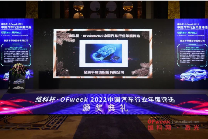 11月17日,由OFweek維科網主辦的OFweek 2022中國汽車行業年度評選頒獎典禮在深圳盛大舉行,經過多輪網絡投票與專家評選,聚辰半導體車規A1等級EEPROM存儲芯片GT25A1024A從近百家企業產品中脫穎而出,榮獲優秀汽車電子創新產品獎。