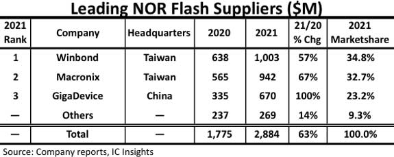 NOR Flash在近幾年內極受市場的歡迎。據半導體市場研究機構IC Insights的數據,NOR Flash產品的銷售額在2021年飆升63%至29億美元,出貨量增長了33%,平均售價則上漲23%。即便是2022年價格波動明顯,但車用NOR Flash的市場表現依然亮眼。