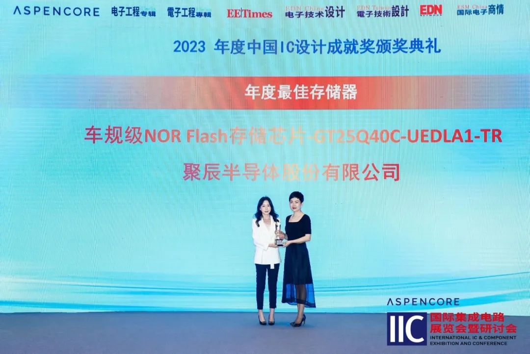 2023年3月30日,2023年度中國IC設(shè)計(jì)成就獎頒獎典禮暨中國IC領(lǐng)袖峰會在上海隆重舉行,聚辰半導(dǎo)體應(yīng)邀出席頒獎典禮。憑借創(chuàng)新的工藝技術(shù)與優(yōu)異的產(chǎn)品性能,聚辰車規(guī)級NOR Flash芯片GT25Q40C獲評中國IC設(shè)計(jì)成就獎之年度最佳存儲器。