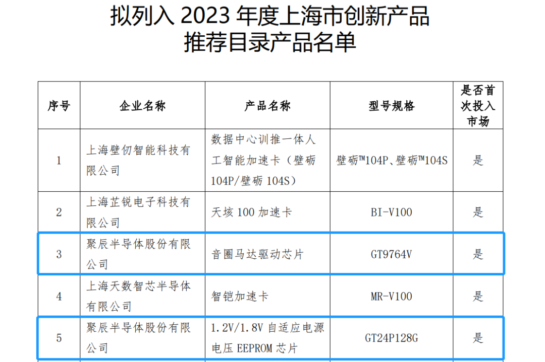 近日,上海市經濟和信息化委員會公布了《2023年度上海市創新產品推薦目錄》(以下簡稱“《推薦目錄》”),經過前期準備、企業申報、材料初審、專家評審以及上海市創新產品推薦目錄編審委員會討論,聚辰半導體的兩款產品——音圈馬達驅動芯片GT9764V和1.2V/1.8V自適應電源電壓EEPROM芯片GT24P128G——被列入《推薦目錄》。