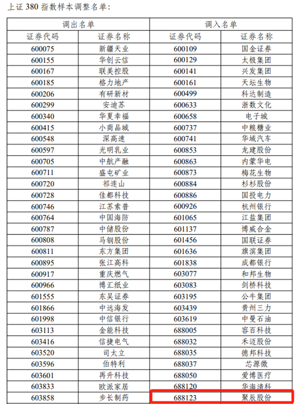 根據指數規則,經指數專家委員會審議,上海證券交易所與中證指數有限公司決定調整上證380等指數樣本。聚辰股份(688123)在本次調整中被調入上證380指數。此次樣本調整于2023年12月11日起生效(即2023年12月8日收市后生效)。